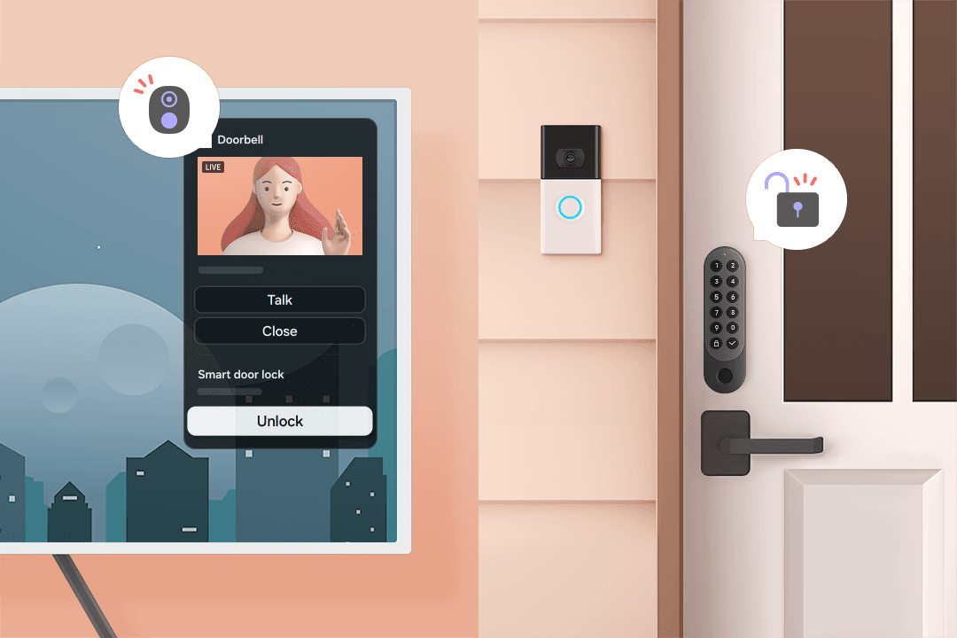 * [TV 스마트싱스 설정 > 알림 > 초인종] 기능 설정이 필요합니다.