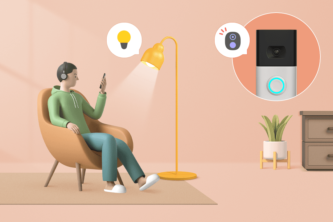 가끔 초인종 소리를 듣지 못할 때도 있죠. 누군가의 방문을 빛으로도 확인해 보세요. 누군가 도어벨을 누를 경우, 집안 곳곳의 조명이 바뀌도록 설정할 수 있습니다. 도어벨 소리를 못 들어도 금방 알 수 있을 거예요.