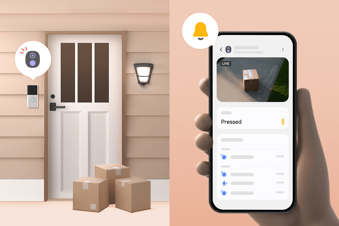 스마트싱스에서는 집 안 곳곳에 설치된 홈 카메라에 연결해서 실시간으로 볼 수 있습니다. 모든 곳을 놓치는 장면 없이 완벽하게 집안을 지켜볼 수 있죠. 만약 누군가 홈 카메라를 해킹하는 것이 걱정이라면, 집에 있는 동안에는 항상 홈 카메라가 꺼지도록 설정할 수도 있습니다.