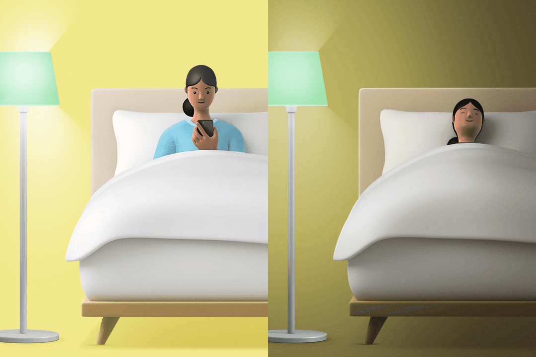 숙면의 첫 번째 비결은 취침 전, 수면 환경 조성입니다. 취침 전에는 시각의 자극을 줄이는 게 중요합니다. 일몰에 맞춰 집안의 조명이 어두워지도록 설정하여, 편안한 수면 환경을 만들어보세요. 이전보다 금세 잠들 거예요.
