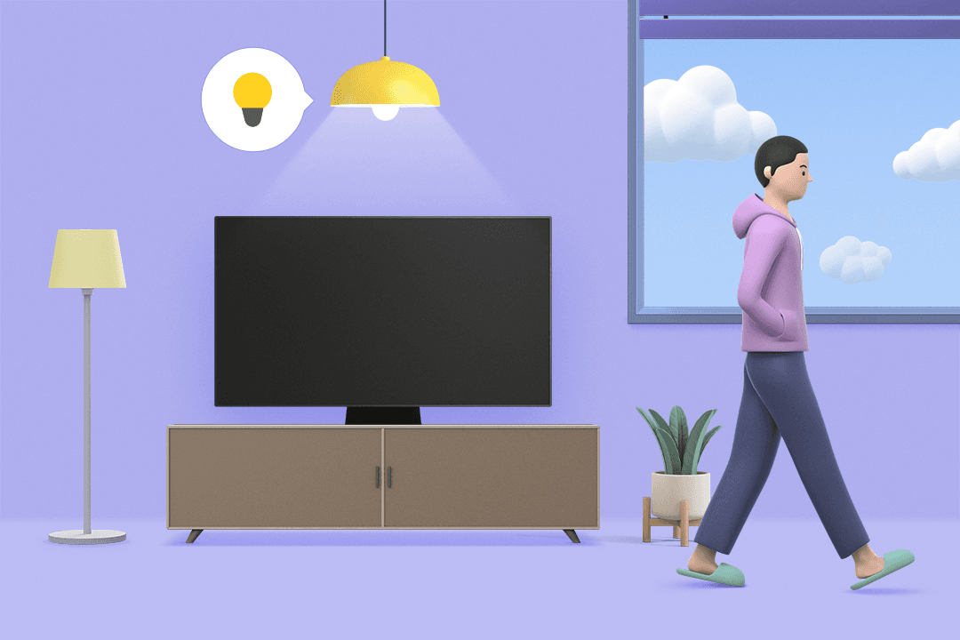 게임에 집중할 수 있는 환경이 자동으로 조성되도록 설정해 보세요. 게임기에 연결된 TV가 켜지면, 조명은 어두워지고 블라인드는 내려와 게임에 몰입할 수 있는 환경을 세팅해 줍니다.