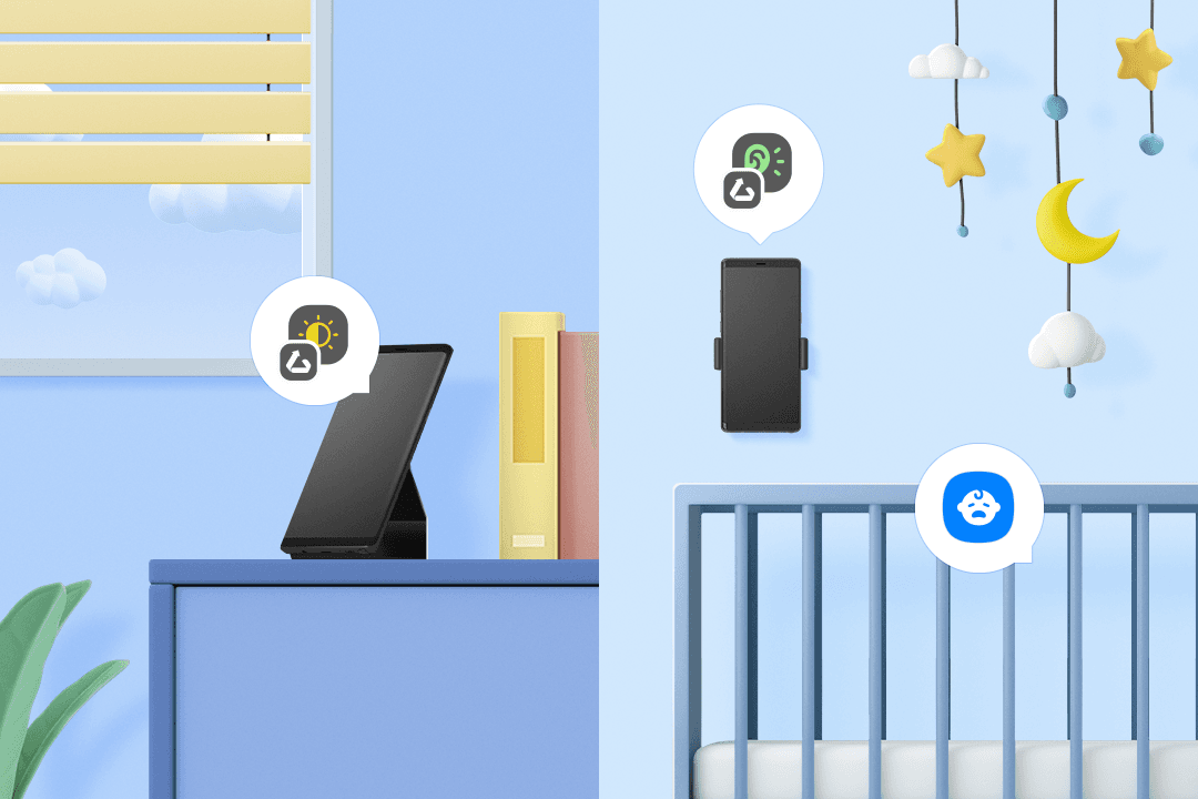 혹시 서랍 속에 사용하지 않는 오래된 갤럭시를 가지고 있나요? 그렇다면 [갤럭시 Upcycle(갤럭시 업사이클)] 사용해 보세요. 아이 울음을 감지하는 소리 센서부터 어둠을 감지하는 조도 센서까지, 활용도가 무궁무진합니다. 갤럭시를 재활용 하면서 우리 집을 더욱더 스마트하게 만들어보세요.