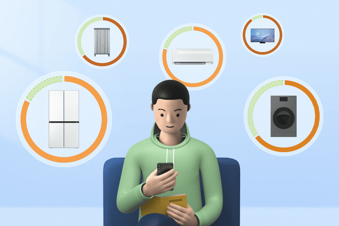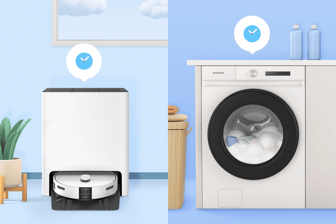 로봇 청소기와 같은 제품을 충전할 때는 [최적 충전]을, 긴 작동 시간이 필요한 제품을 사용할 때는 [맞춤 예약]을 활용해 보세요. 전기 요금이나 탄소 배출량이 낮은 시간대를 활용해 자동으로 제품을 충전하거나 작동시키고, 전기 요금 절약과 탄소 배출량 저감까지 실천할 수 있어요.