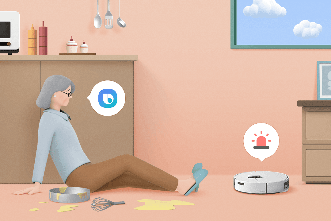 위급 상황은 빠르게 인지하고 대응하는 것이 가장 중요합니다. 스마트싱스와 비스포크 AI 스팀만 있으면 위급 상황에 빠르게 대응할 수 있어요. 비스포크 AI 스팀에게 “하이 빅스비, 도와줘”를 외치면, 가족에게 알림을 보내어 여러 위급 상황에 즉시 대응할 수 있어요.