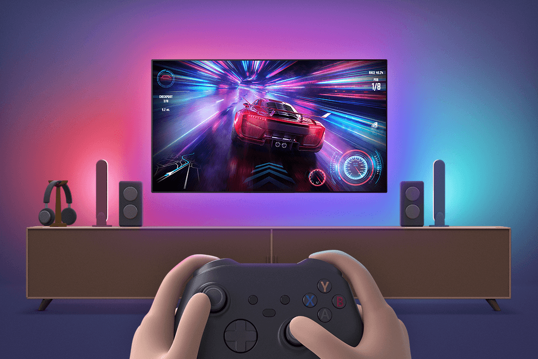 현실의 공간이 게임 속 색감과 하나로 어우러져 마치 게임 속에서 살아 숨 쉬는 듯한 생생함을 전달합니다. 삼성 게이밍 허브는 물론 콘솔 게임기까지, Hue Sync(휴 싱크)와 함께 TV로 플레이하는 모든 게임을 짜릿하게 즐겨보세요.