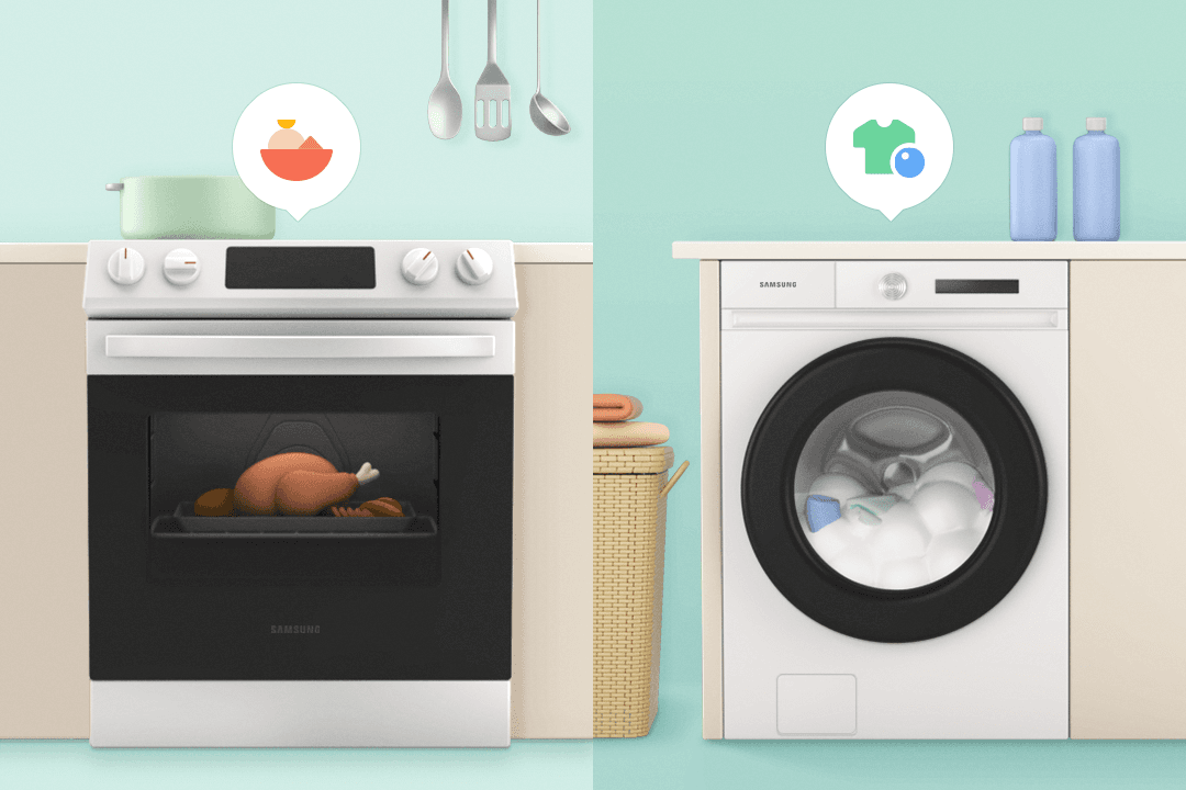 가족들이 집안일에 능숙하지 않더라도 걱정할 필요는 없어요. 스마트싱스가 알맞은 가이드를 제공해 주니까요. 배우자가 노련한 요리사가 아니라면 추천레시피를 따라 해보세요. 놀이 후 어질러진 방은 아이 스스로 로봇청소기의 도움을 받아 정돈해요. 청소년 자녀가 직접 운동복 세탁을 하고 싶다면 [Clothing Care(클로딩 케어)]를 따라 맞춤 세탁을 할 수 있어요.